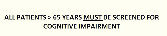 “We found that further improvement is required in the following areas. Screening for cognitive impairment was not routinely carried out in patients over 65 years when they were admitted to hospital.”[23]